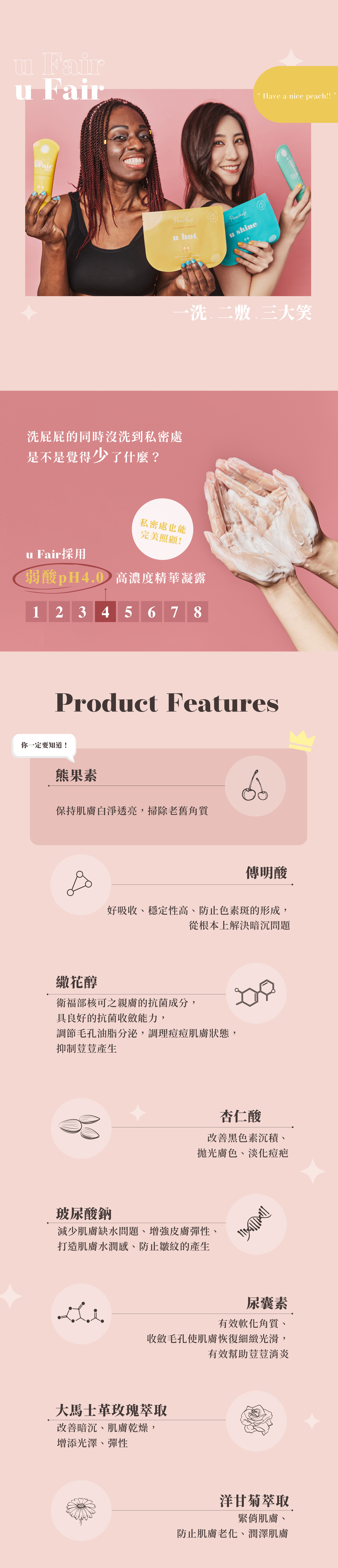 u fair 熊果素潔淨嫩白蜜桃私密洗凝露 1瓶