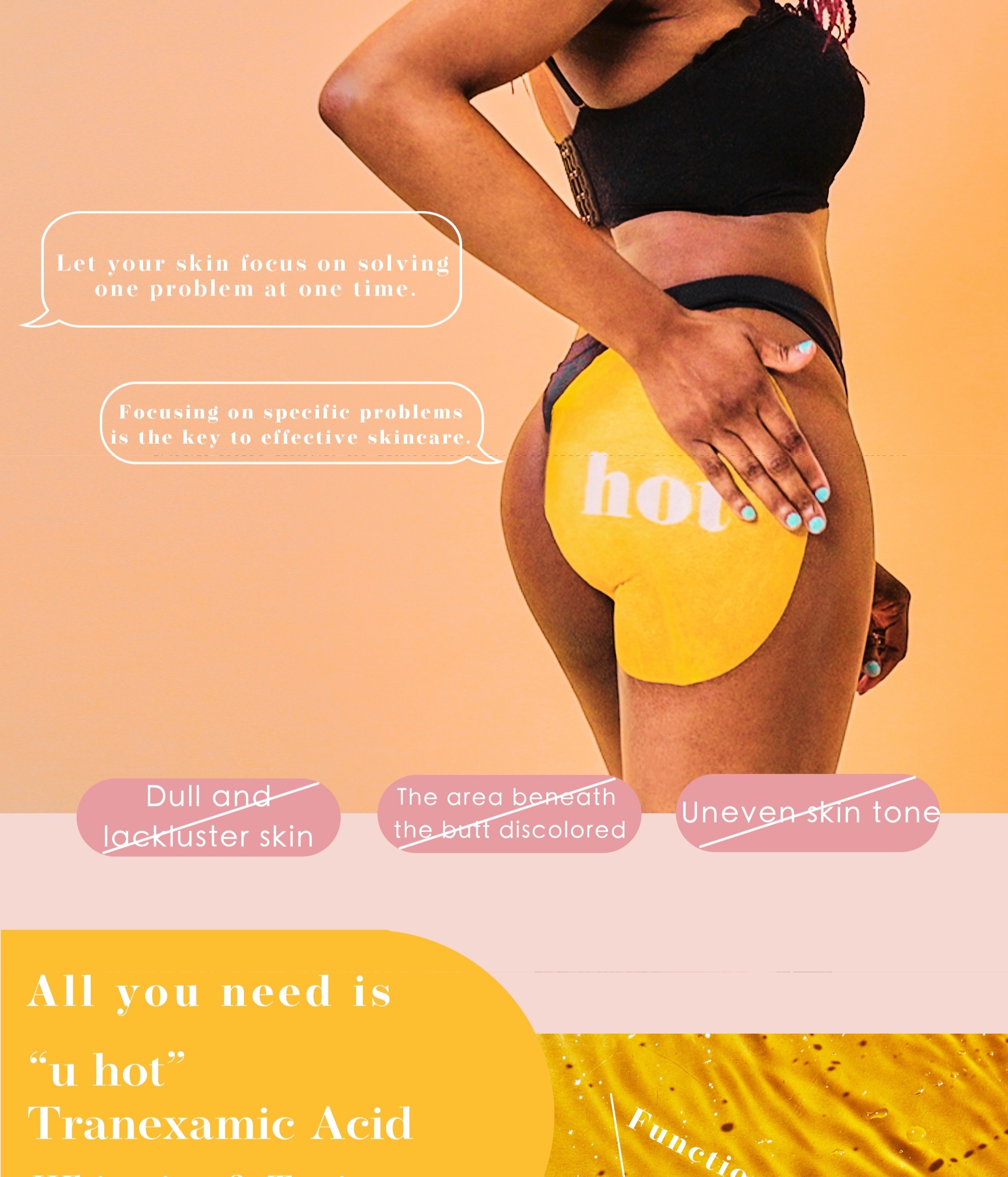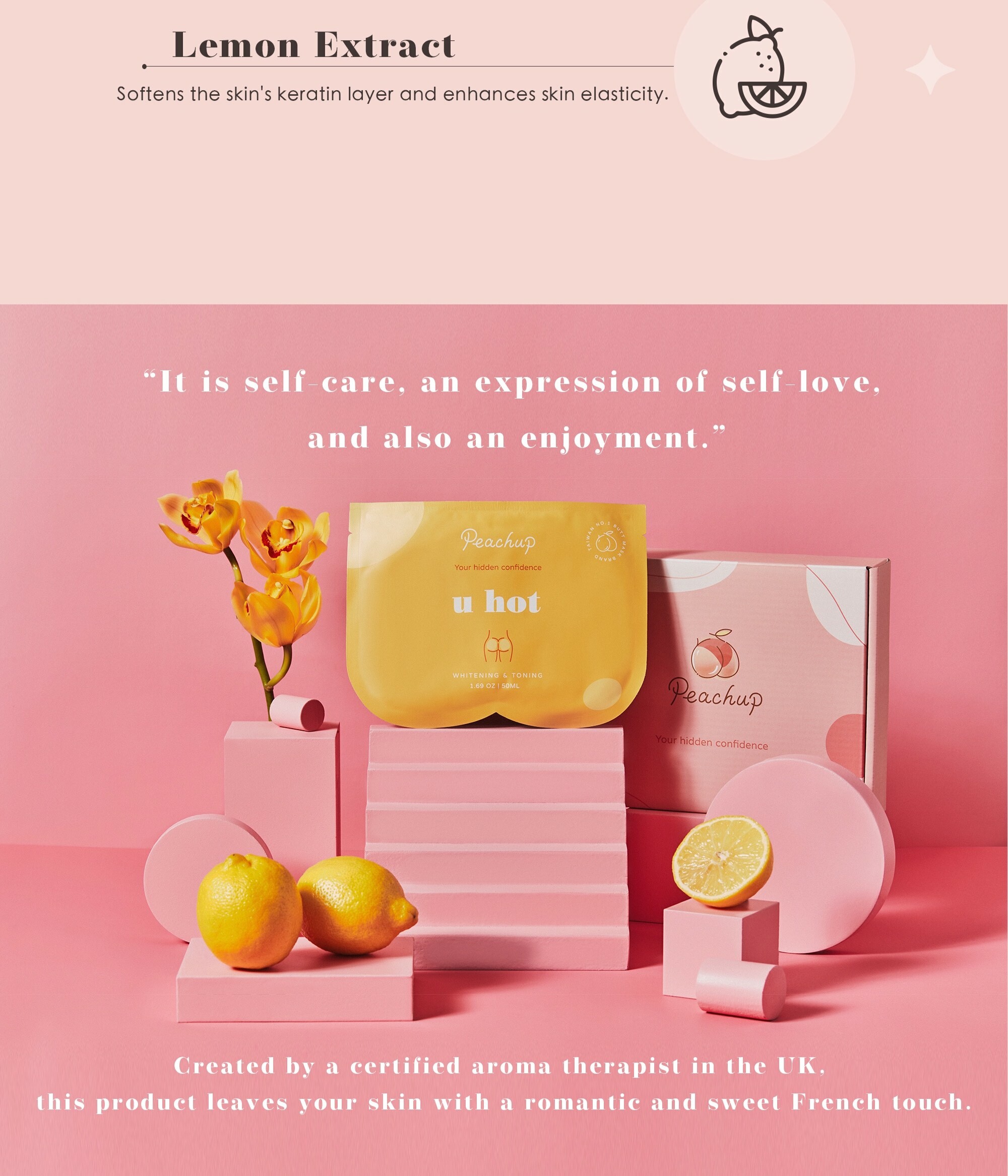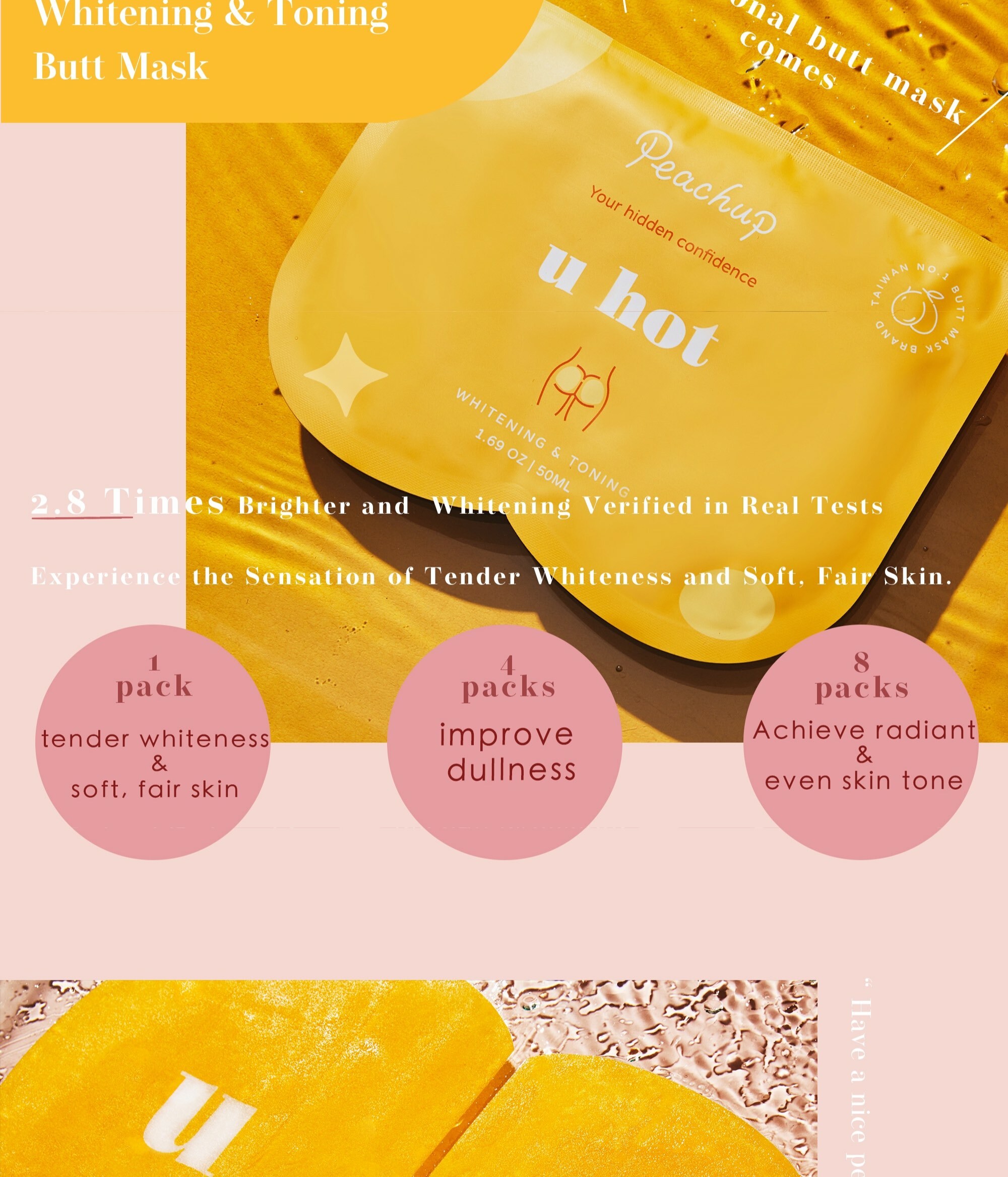Peachup "U hot" enriched with potent whitening ingredients, this product effectively brightens and eliminates buttock skin dullness. Say goodbye to dark and dull butt as you embrace a more radiant one!